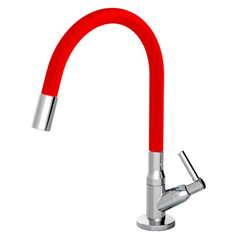 Torneira Cozinha De Mesa Com Base De Metal Bica Movel De Abs Color Flexivel Vermelho 1/4 De Volta C70 1/2 Blister Delta